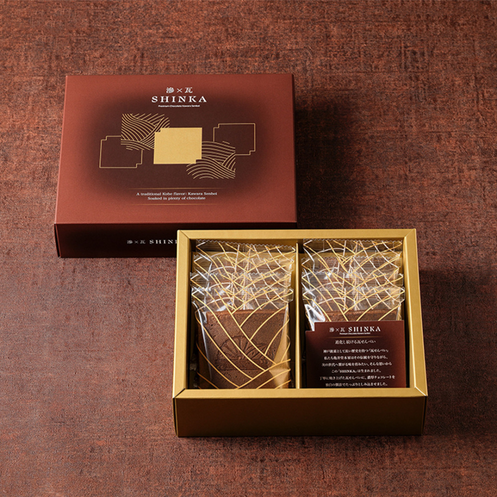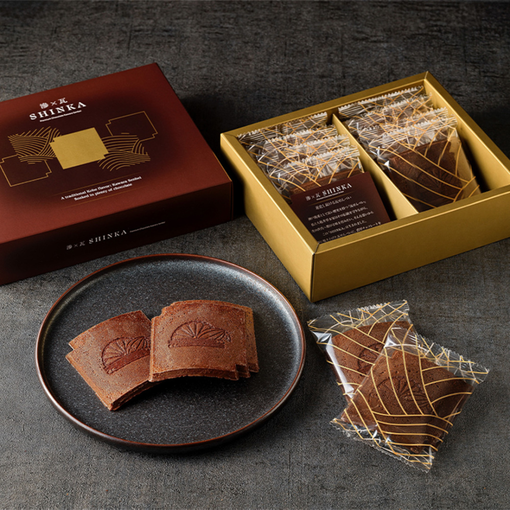 瓦せんべいに、香り豊かなチョコレートをじっくりとしみ込ませました。ザクッとした歯触りの中に、濃厚なチョコの甘さと瓦せんべいのやさしい風味がとけ合う、新感覚の和洋スイーツです。